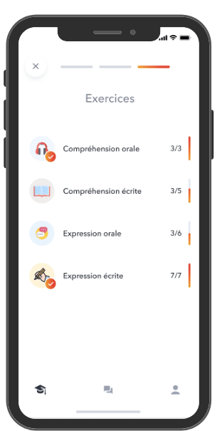 Tous les jours, travaille tes Compréhension et Expression Orales et Écrites. Ne te limite pas à un aspect de la langue et avance rapidement !